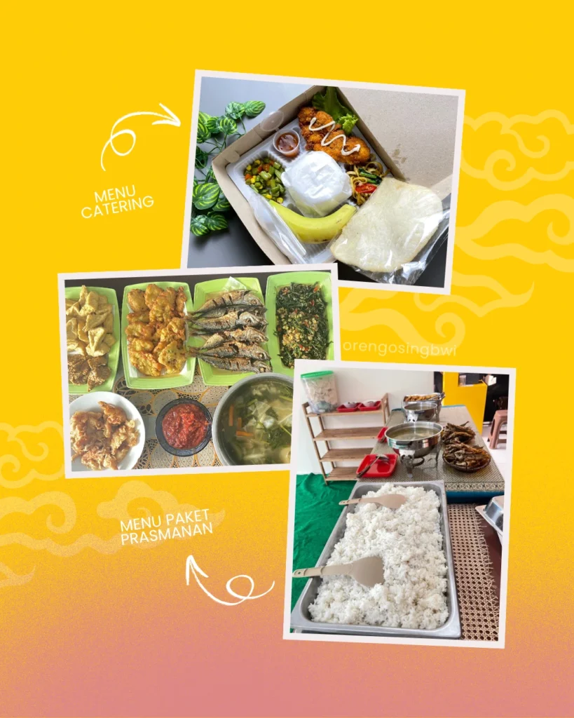Layanan catering dari Oreng Osing siap memenuhi kebutuhan acara dengan menu khas Banyuwangi yang autentik, dalam berbagai paket hemat dan premium. Pesan mudah, rasa terjaga, dan siap antar.
