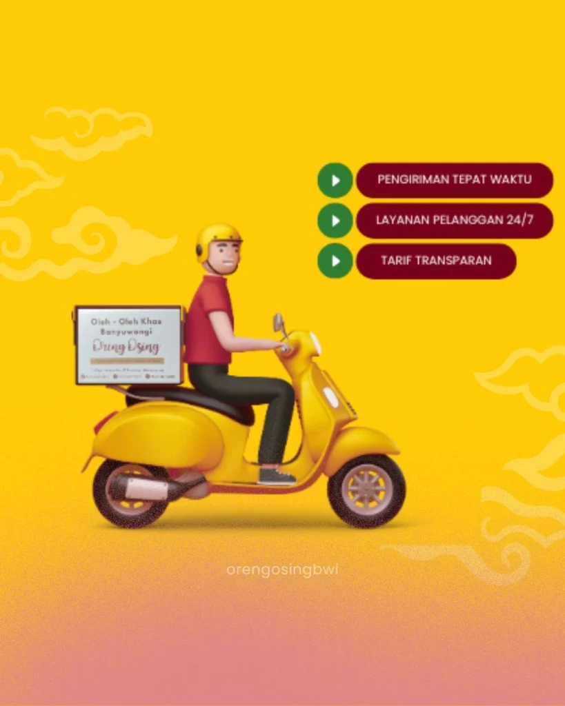 Nikmati kemudahan belanja oleh-oleh khas Banyuwangi tanpa harus keluar rumah. Kami siap mengantar pesanan Anda ke hotel, stasiun, bandara, atau alamat pilihan dengan cepat dan aman.